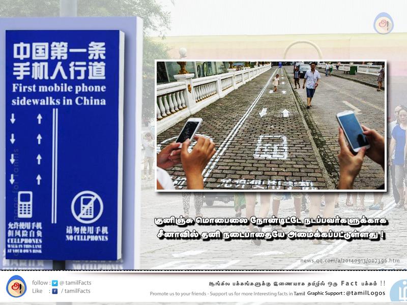ரோட்ல குனிஞ்சுட்டே மொபைல நோன்டிட்டு போறவங்க மற்றவரை தொந்தரவு செய்யாதிருக்க சீனாவில் தனி ரோடே போட்டு தரப்பட்டுள்ளது!! http://pbs.twimg.com/media/CGdxmZuWwAA_KeN.jpg | ||