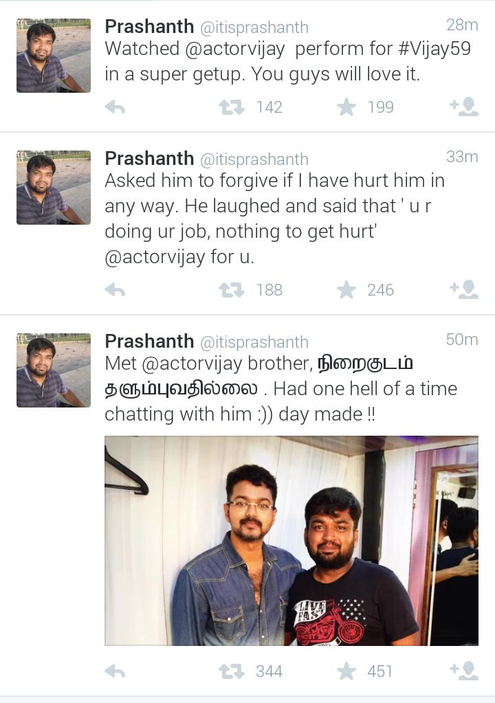 புலி படத்துக்கு அவ்வளவு மட்டமா விமர்சன பண்ணவன் தோள்லயும் கை போட்டு பேசுறார் பாரு அதான் தளபதி! http://pbs.twimg.com/media/CS0AN1nVEAEO6Wg.jpg | ||