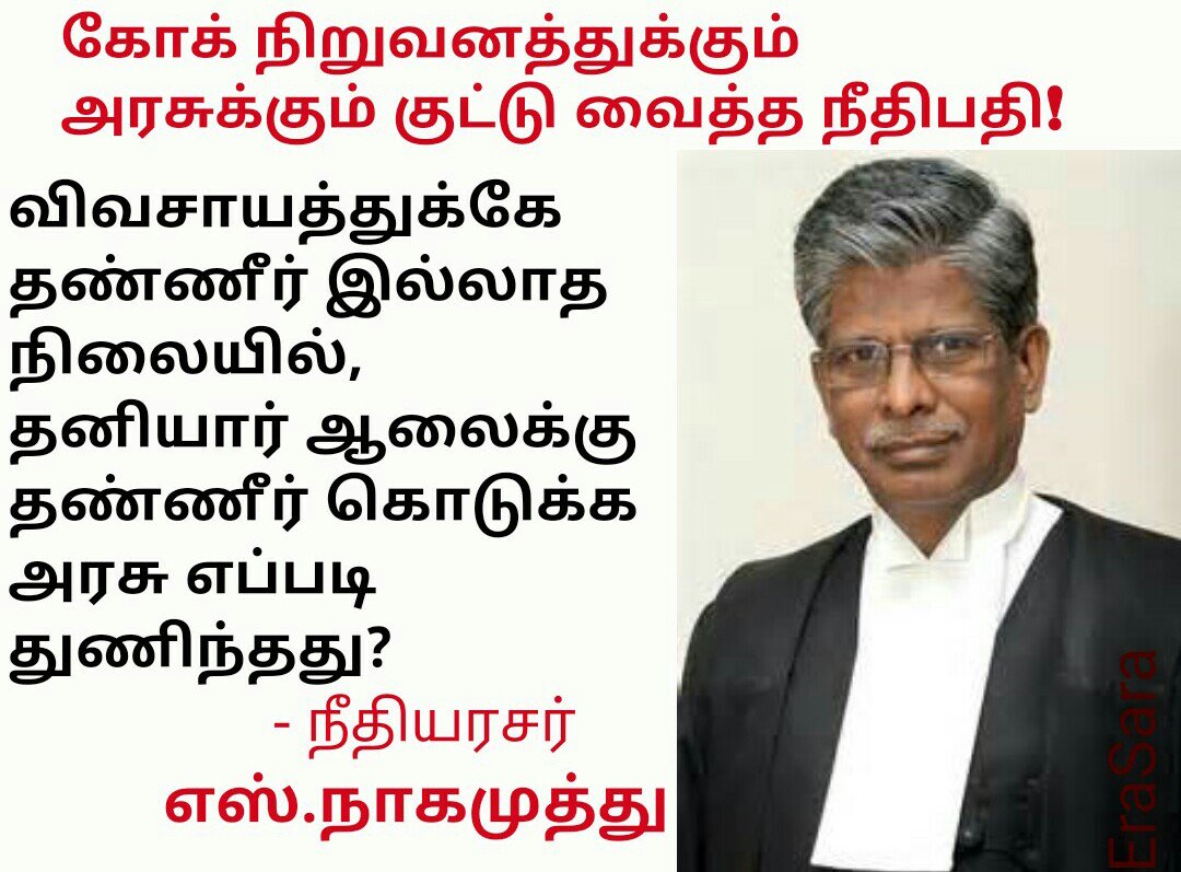 #தாமிரபரணி வழக்கில் கோக் நிறுவனத்துக்கு தடை போட்ட ஐகோர்ட் நீதிபதி #நாகமுத்து மடிகை கிராமத்தை சேர்ந்த ஒரு விவசாயி👏 http://pbs.twimg.com/media/Cx4NtdlUUAALEJI.jpg | ||