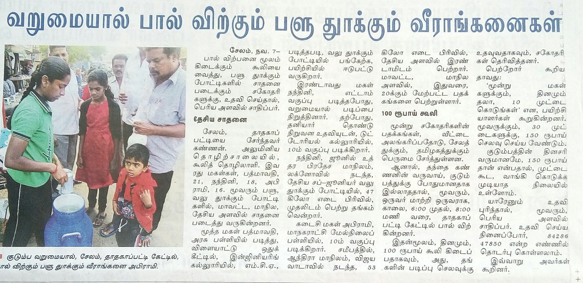 முட்டை வாங்ககூட வழியின்றி பால்விற்கும் பளுதூக்கும் சகோதரிகள். நான் பேசினேன். எந்தஉதவியும் கிடைக்கவில்லையாம். ப்ளீஸ்🙏 http://pbs.twimg.com/media/CwtfbJZUcAAt9iE.jpg | ||