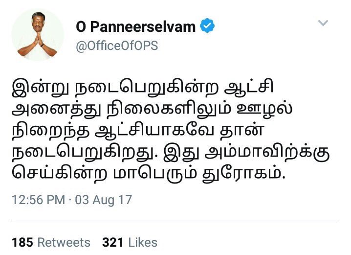 '30 நாளில் ஊழல் ஒழிப்பது எப்படி?' - புத்தக விலை ரூ.111/- எழுதியவர் திரு.ஓபிஎஸ் # மூணாம் தேதில இருந்து முப்பதாம் தே… https://twitter.com/i/web/status/902878328805138432 | ||